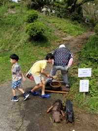 その内に田舎は猪に占領されて人間がこんな風に捕獲されるとのこと(笑) |