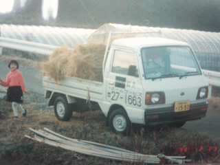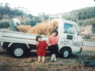 | 四歳を頭に三人の娘を連れての移住でした。 | 最初は六畳・四畳半二間の十坪のアパート住まいでした。狭いながらも充実した毎日。 寝る前には必ずオヤジの趣味でプロレスごっこ。 | ハウス14アール(1400平米)でアスパラ栽培と田17アールのスタートでした。 |