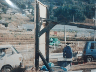 | スタート時に横須賀のおっ母さんが数ヶ月程手伝いに来てくれていました。感謝しておりますがドラ息子なので気の利いたことが言えずに現在に至っております。この場を借りてお礼申し上げます。 | 畑の角に廃材で鍼灸マッサージ出張治療の看板を立てました。 | 看板を派手に立てた理由は形がないとお金が貰いにくいからです。 |